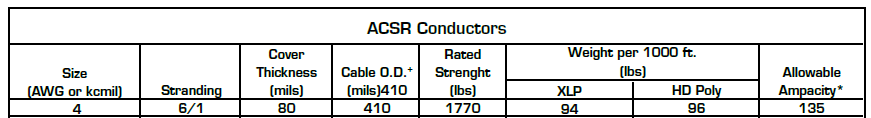 A table like this would show the specifications for a given type of wire. In this example, a user could start with the ACSR 4 AWG 6/1 SWAN from the master catalog by adding it to the 3D Model. The attributes of this wire from the master catalog can be viewed in the Data Entry Window.