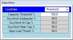 However, it is possible to customize this capacity display. If a user would like to adjust the capacity display, this can be done using the Capacity Threshold attributes. To do this, a user first needs to select the loadcase that is on the pole.