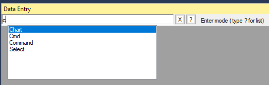 To select the displayed chart or report enter “Chart” or “Report” press Tab and select the desired chart or report from the displayed list.