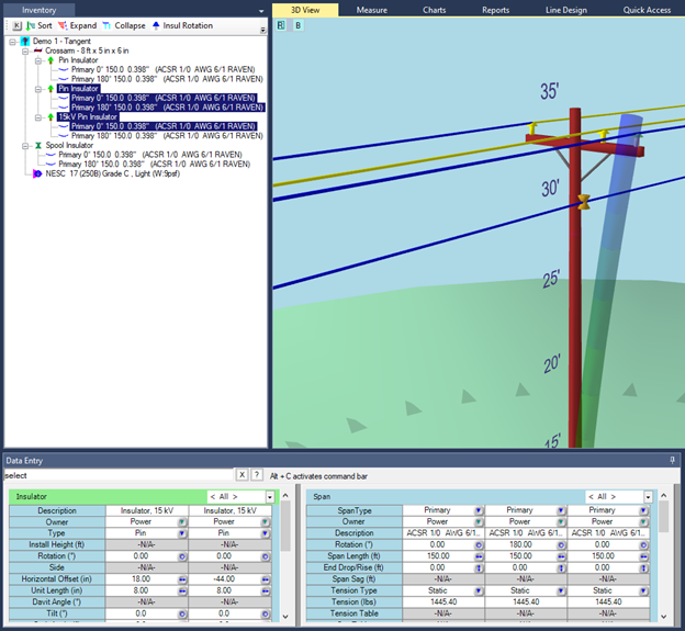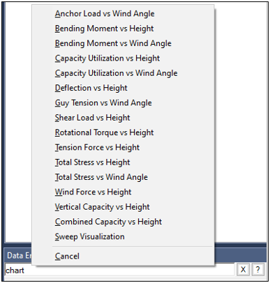 Remember that the selected pole model must be currently calculated (see the % of Allowed MCU result in the Capacity display) to display Chart or Report results.
