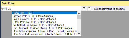 To activate a menu command, enter “Command”, “Cmd”, or “Menu” or a portion there of and press Tab. The auto complete list then presents a suggested list of commands matching your entered filter value.