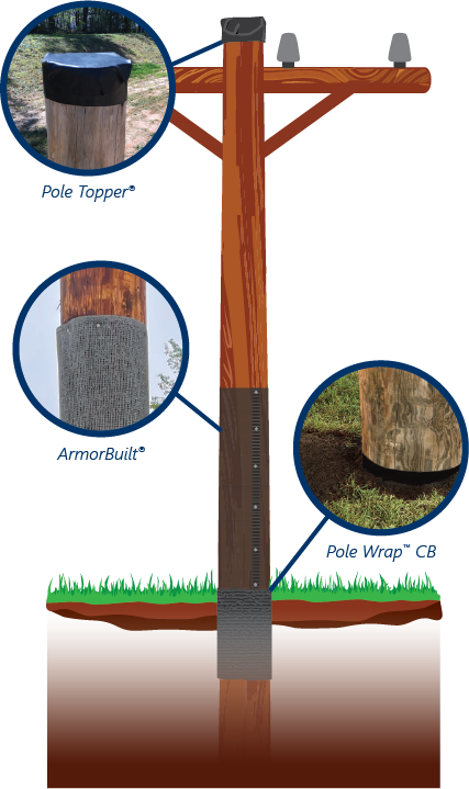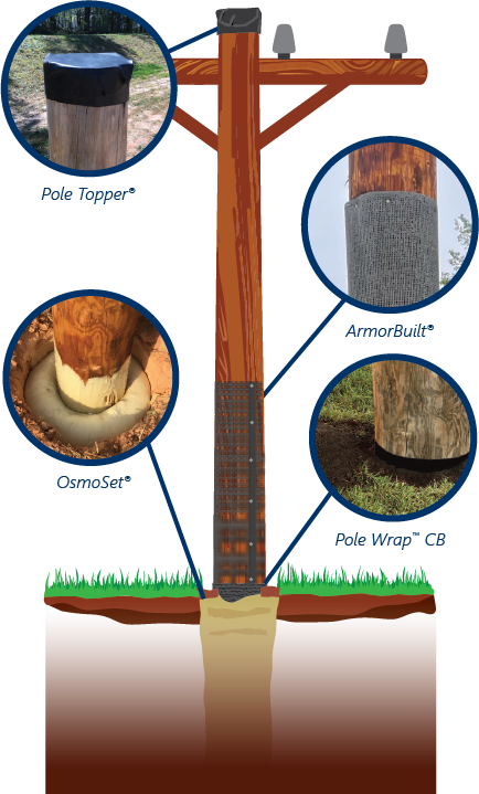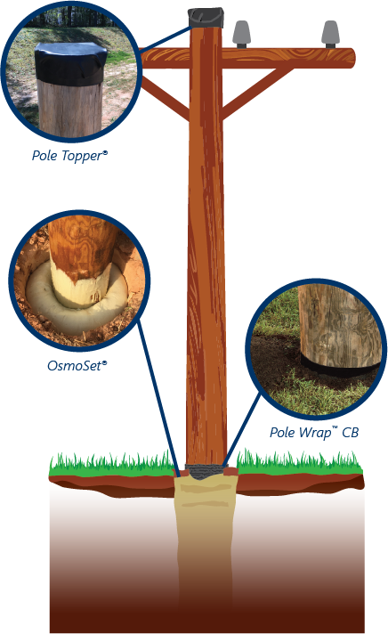 - Pole Wrap™ CB Preservative Bandage, a dry wrap that protects the pole's most decay-prone zone—the groundline.