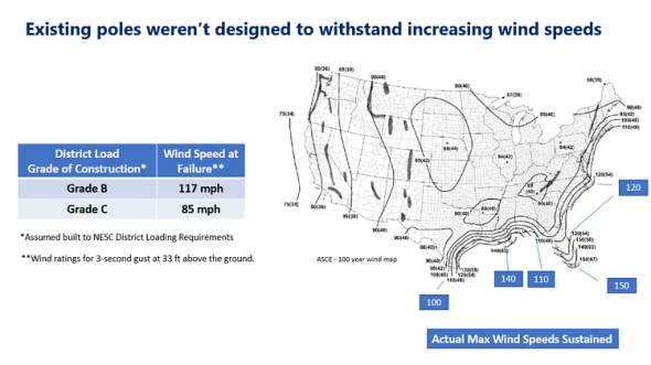 - We provide you with a summary of structures at risk due to extreme weather events as well as recommended system hardening solutions or replacement designs.
